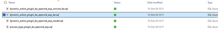 For our integration, we’ll focus on the plugin folder, specifically the SQL file named dynamic_action_plugin_be_apexrnd_aop_da.sql. This file contains the code to install the AOP plugin as a dynamic action in Oracle APEX.