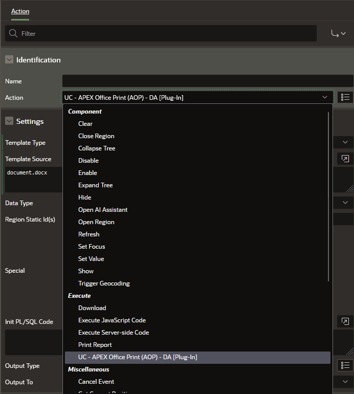 Note: This plugin is what enables AOP to interact with your APEX application and dynamically generate documents from various components.