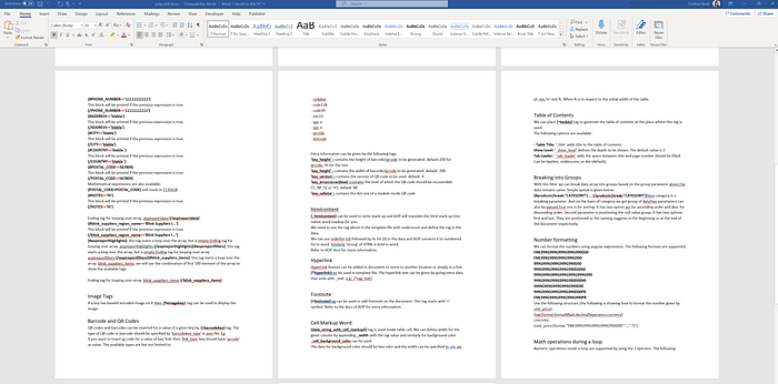 As you can see in the pictures above, this is an example of a default Word template that AOP generates for you.
